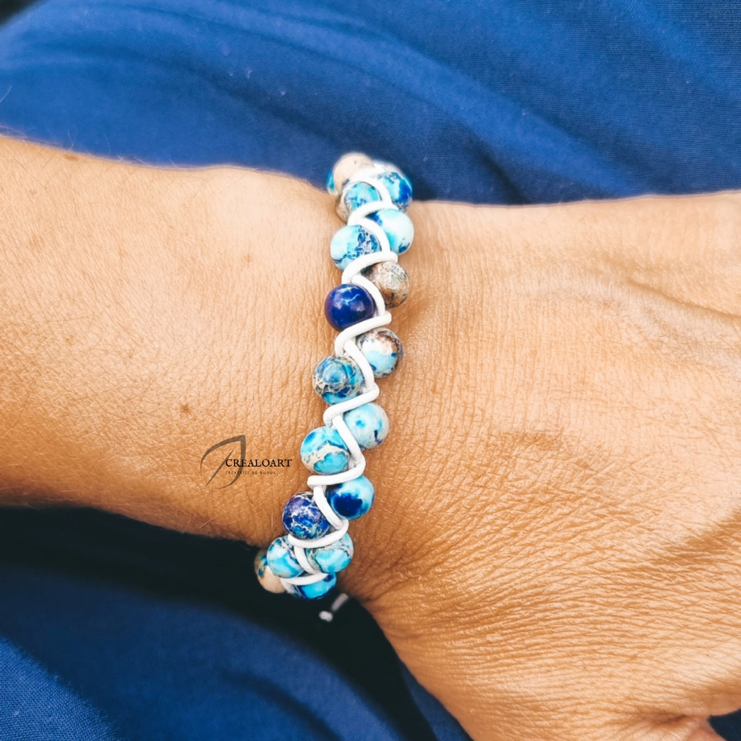 Nouveau bracelet en perle de jaspe bleu double rang de la collection Athena !